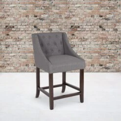 Flash Carmel Series 24″ High Transitional Tufted Walnut Counter Height Stool With Accent Nail Trim