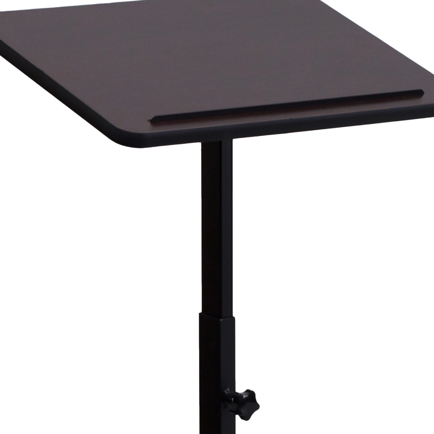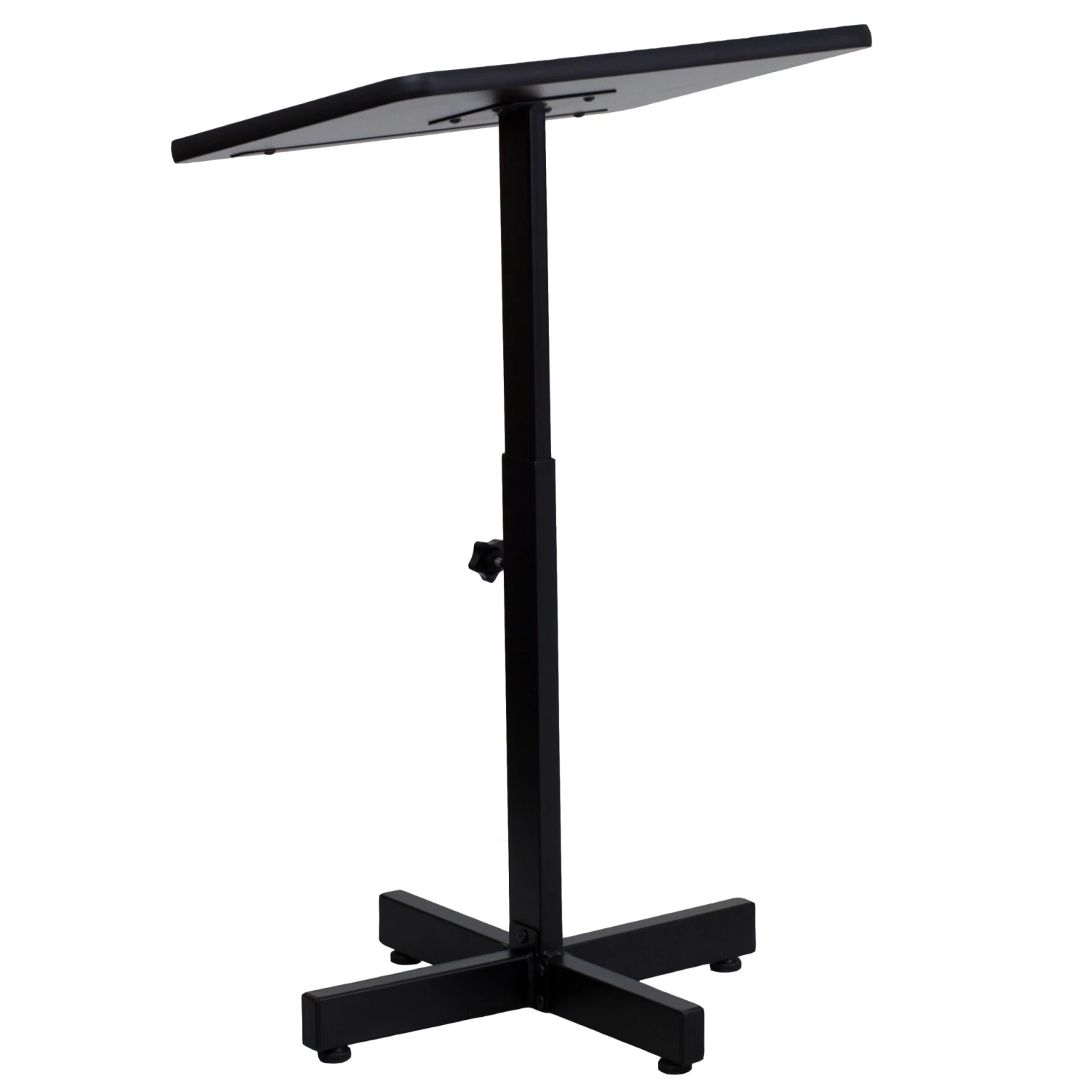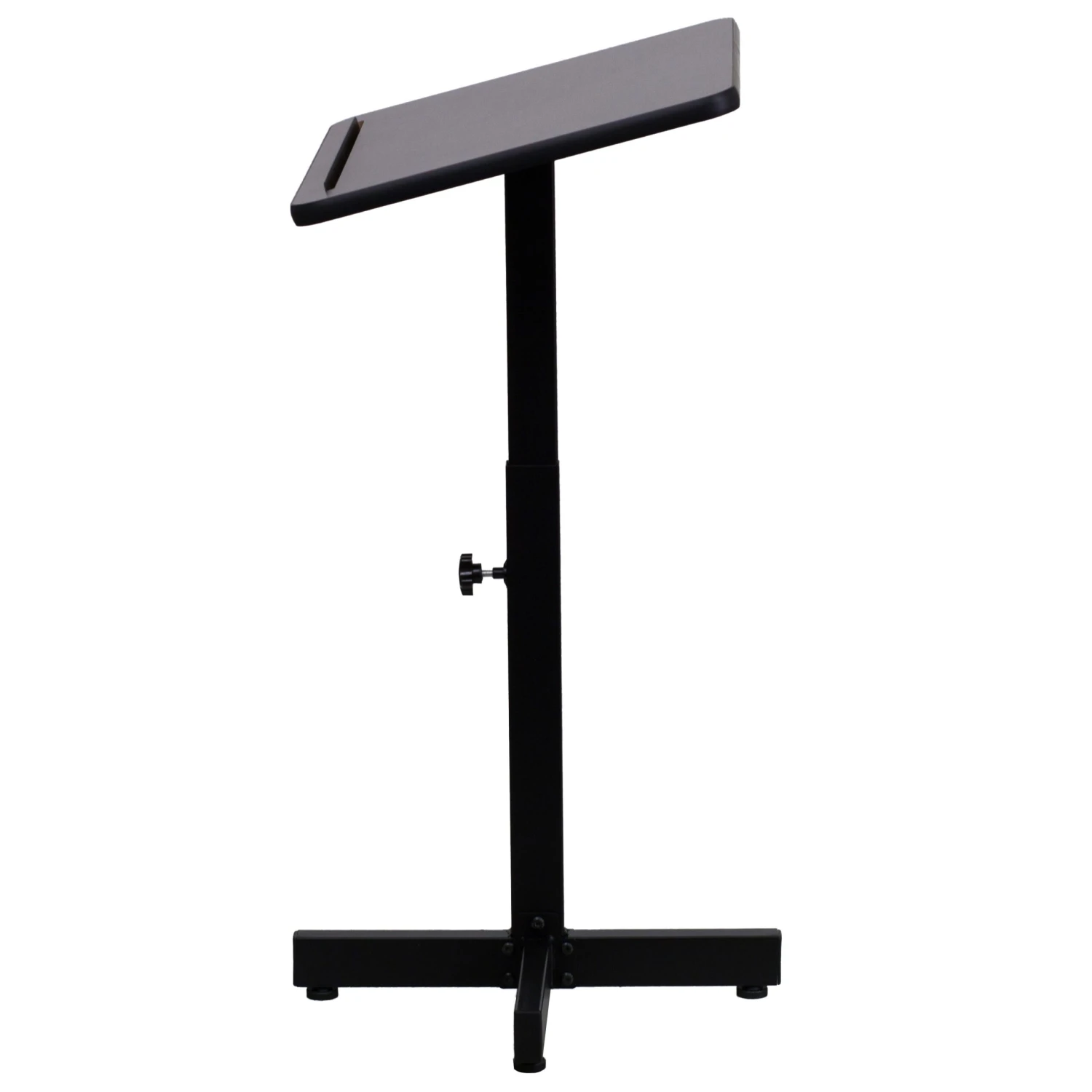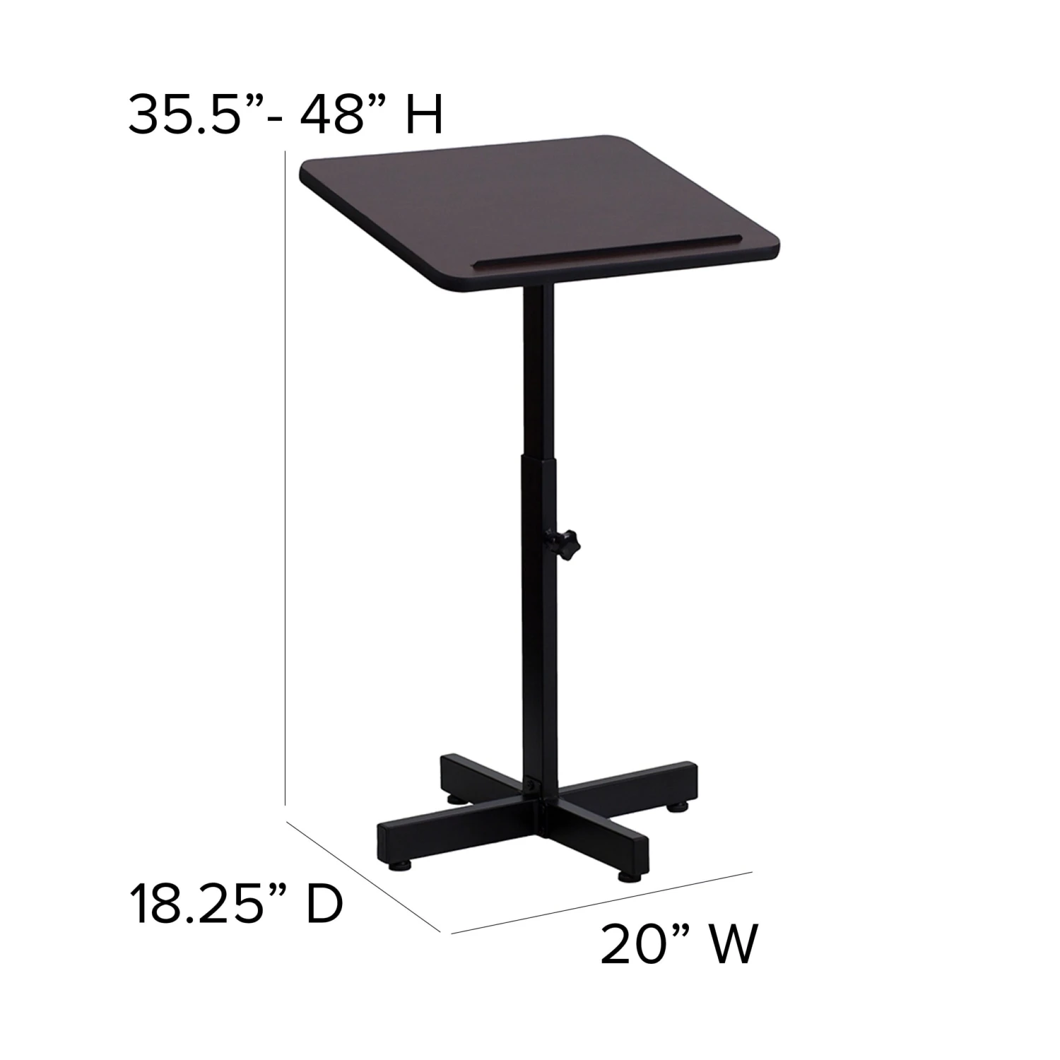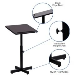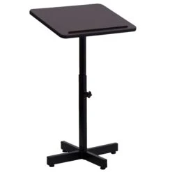 Make your guest speaker feel welcome with a well-built adjustable height lectern. Ideal for multi-use facilities, this portable lectern can be easily transferred between rooms. Every classroom from elementary to college should be equipped with a lectern for guest speakers and career day. Boasting a thermal fused laminate surface and metal frame, this speakers stand has a handsome appearance. The simplistic design of this lectern is perfect for presentations that don’t require any supportive equipment. This stand features a slanted top that will prevent devices, papers, books and writing utensils from sliding. The height adjustable knob makes it easy to adjust for different speakers. No matter where you use it, this portable lectern will be a welcome addition.