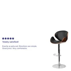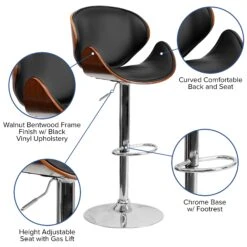 If you’re looking for unique seating for your breakfast bar or kitchen island this retro beechwood finish bentwood adjustable height barstool is a great fit . Reminiscient of earlier decades, the curved back and seat are covered in black vinyl upholstery and padded with 2″ CAL 117 fire retardant foam to cradle you in comfort.