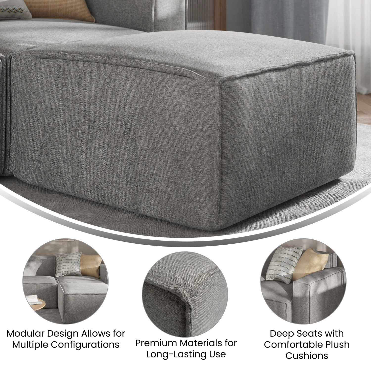 Flash Bridgetown Luxury Modular Sectional Sofa, Ottoman Seat