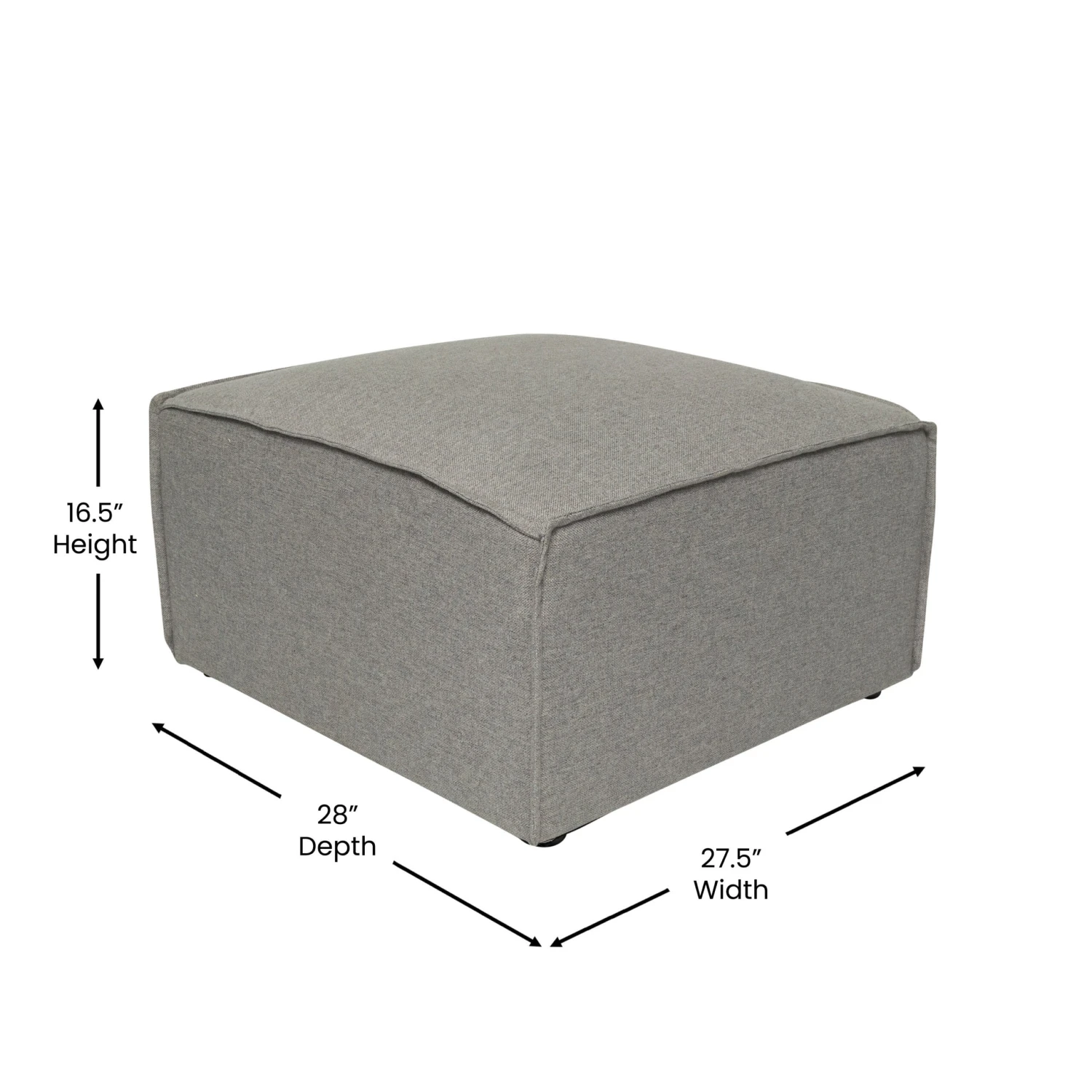 Versatility is a major plus in modern furniture design and this modular ottoman is the perfect marriage of form and functionality. This modular sofa component may be used alone or as a companion piece with other items in the collection for a custom configuration. Boasting a pocket spring core with plush comfort foam padding and premium fabric upholstery with piped edges, the modern look of this sectional sofa ottoman is ideal for almost any decor. Constructed with a solid wood frame, this seat holds up to 300 lbs. static weight. Assembly takes less than 10 minutes and simply vacuum or lightly brush to keep your new seating looking showroom new.