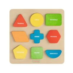 Put the fun in functional in your daycare or classroom while teaching basic shapes and colors with this learning puzzle board. Thoughtfully crafted from Greenguard certified birch plywood and boasting kid friendly rounded corners, this puzzle board teaches sorting by shape as well as color in a fun and tactile way that helps children retain what they’ve learned. Improve fine motor skills, spatial reasoning and problem solving skills through play. The brightly colored shapes provide sensory input to keep young learners engaged. Create fun activities for your students or let them engage in creative, independent play. Enjoy peace of mind knowing that this learning board is made with completely child friendly materials. For easy care, wipe your activity board clean with a damp cloth and allow to dry to keep it looking new.