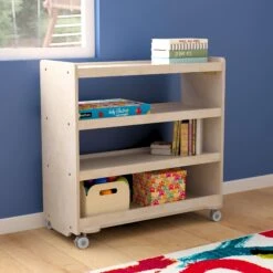 Organization is a must in today’s classrooms but keeping things in order can be a struggle. This mobile wooden storage cart lets you bring necessary supplies to your current work area and the wheels lock in place for security. When you’re finished with your project, the cart can be wheeled away to open up floor space for story time or free play. Beautifully designed with a glossy natural finish and boasting lots of space for holding blocks, books, toys, or art supplies, this classroom cart is a must-have for busy environments.
