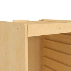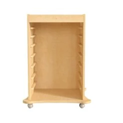 This wooden storage shelf assembles in under 40 minutes and wipes clean with a damp cloth. Purchase other items from our early education collection to create custom configurations for much needed additional storage.
