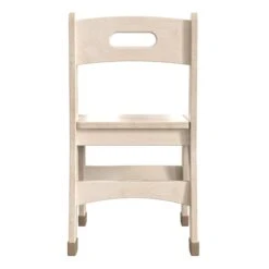 Give your preschoolers a comfortable place to sit that promotes good posture and productivity with this set of 2 wooden classroom chairs. These chairs feature a seat height ideal for little ones and boast rounded edges to prevent injury if bumped and silicone foot caps to keep them in place when children are sitting or standing. The natural finish blends seamlessly in any classroom decor while the reinforced seat along with front and back leg braces give additional strength, plus angled legs help prevent tipping. The wood in these chairs is Greenguard Certified for low emission of volatile organic compounds for healthier indoor environments and hold up to 200 lbs. static weight capacity per chair. Regularly wipe clean with a damp cloth and dry to maintain the appearance of your classroom seating. Available in 3 sizes, these chairs match the other items in our early education classroom collection for a cohesive look in your classroom.