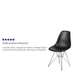 Rejuvenate your home with modern seating that will be a lovely addition as an accent chair in your living room, den, library or sitting room. This chair will add an attractive statement in your kitchen or dining room. Bring your office space or waiting room back to life by using multiple colors throughout your space. The smooth contours of the chair conform to your body allowing you to sit comfortably. The durable matte plastic molded chair and geometric chrome base add an artistic appeal.