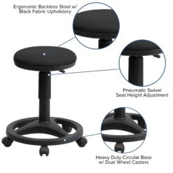 This backless stool is practical for any fast-paced environment. Backless stools force your core muscles to work by sitting up straight and keeping your feet flat on the floor. The small frame design of a backless stool makes it easy to maneuver around tight spaces with ease. The durable circular base provides as an excellent footrest with its wide width. This stool can be used in a multitude of settings including the classroom, doctor’s office, hospital, garage or a workshop.