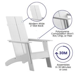 Refresh your outdoor space with this set of 4 commercial grade modern dual slat rocking Adirondack rocking chairs and 22″ round fire pit. The upgraded design of this 5 piece outdoor set is ideal on your concrete patio, in the backyard, or can be transported to your campsite. The fire pit includes a spark screen, grate, and poker to help you manage your wood burning fire.