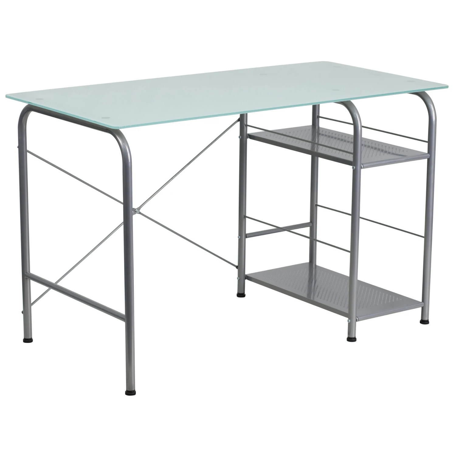 Flash Glass Computer Desk With Open Storage