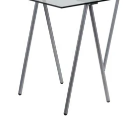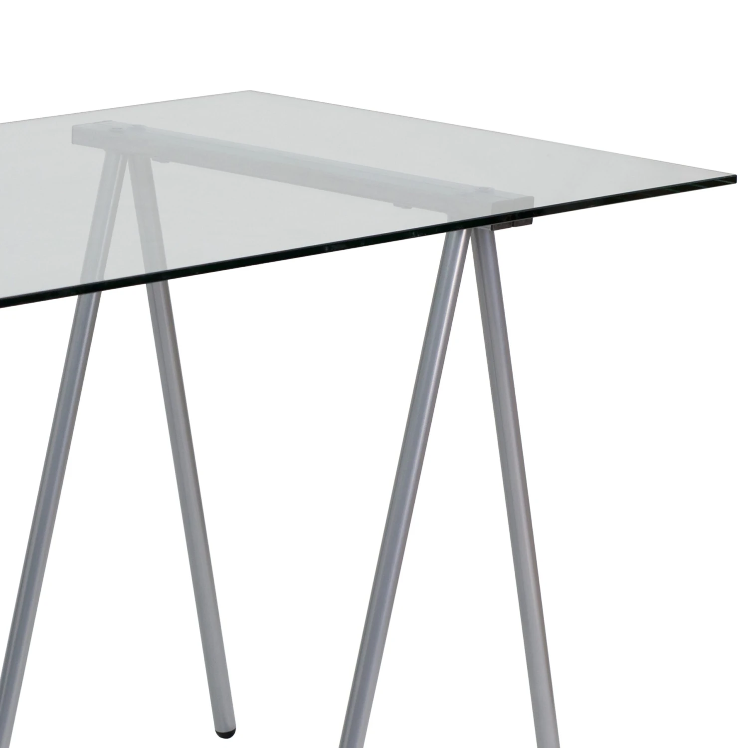 This spacious glass desk has an architectural appeal with its sawhorse leg design while the clear top lends an open airy feel to any environment. This desk provides a great option for managing daily household bills, studying or for casual computer usage. You can also use this desk as a display area for those family photos, colorful decor items or mementos from past vacations. This desk shows off a sleek appeal that will complement any space.