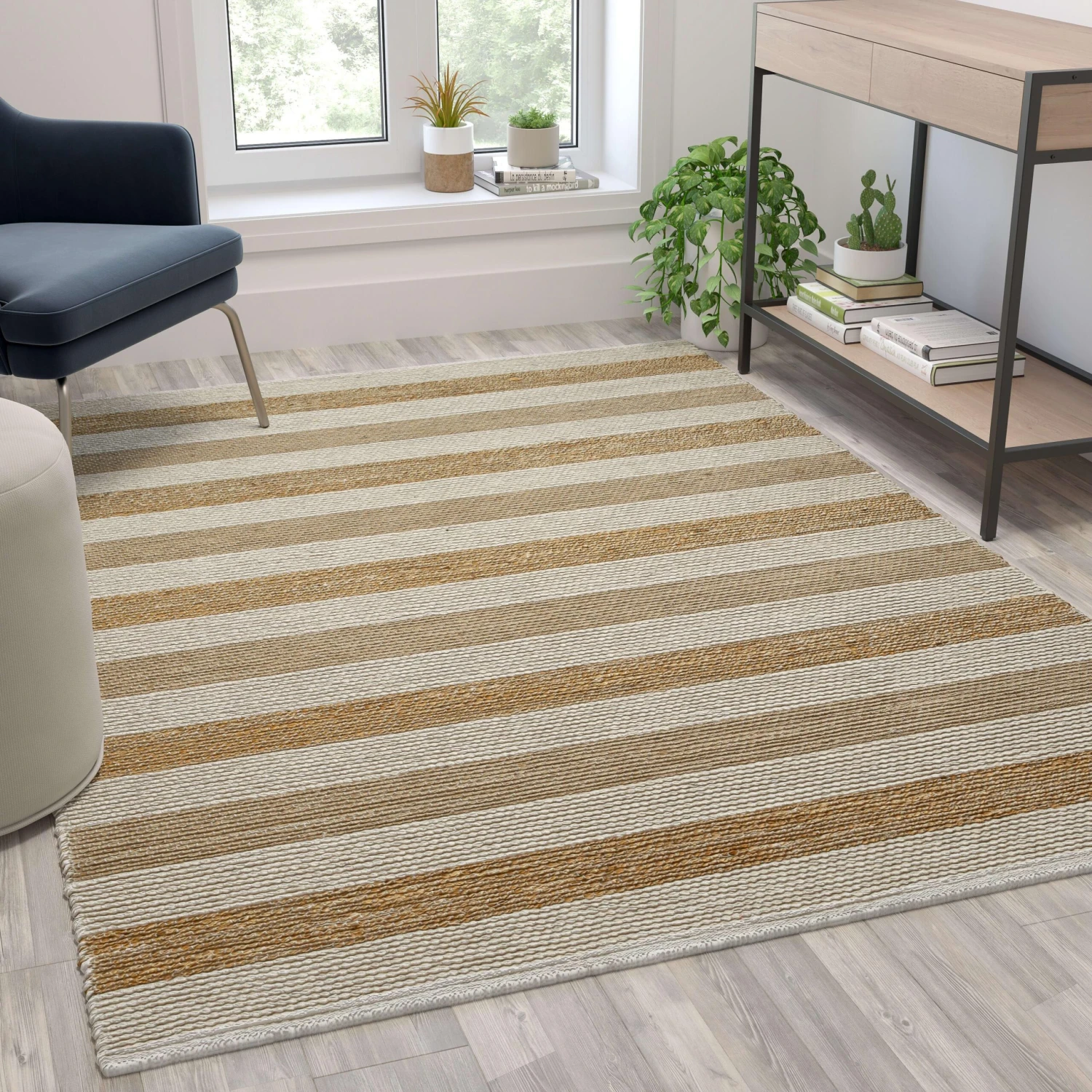 Keep your design earthy and airy with the neutral tones of this handwoven jute blend area rug. The relaxed design of this indoor area rug won’t compete with other design elements and blends seamlessly in every decor from farmhouse to coastal making it a definite go-to for your design aesthetic. The thick weave and soft blend of fibers will provide a cushioned feel for your feet.