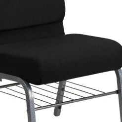 Auditorium chairs provide a comfortable seating experience in venues where guests will be seated for extended periods of time such as lecture halls, schools and churches. Seminar materials, bibles or notebooks can nestle tidily in the pouch on the back of the chair while the underseat book rack can hold personal belongings. A generously padded back paired with a 4 inch padded waterfall edge seat that relieves leg strain give visitors a restful place to sit. The armless design allows access to the chair from any direction. Built-in ganging brackets connect your chairs to maintain a uniform look.