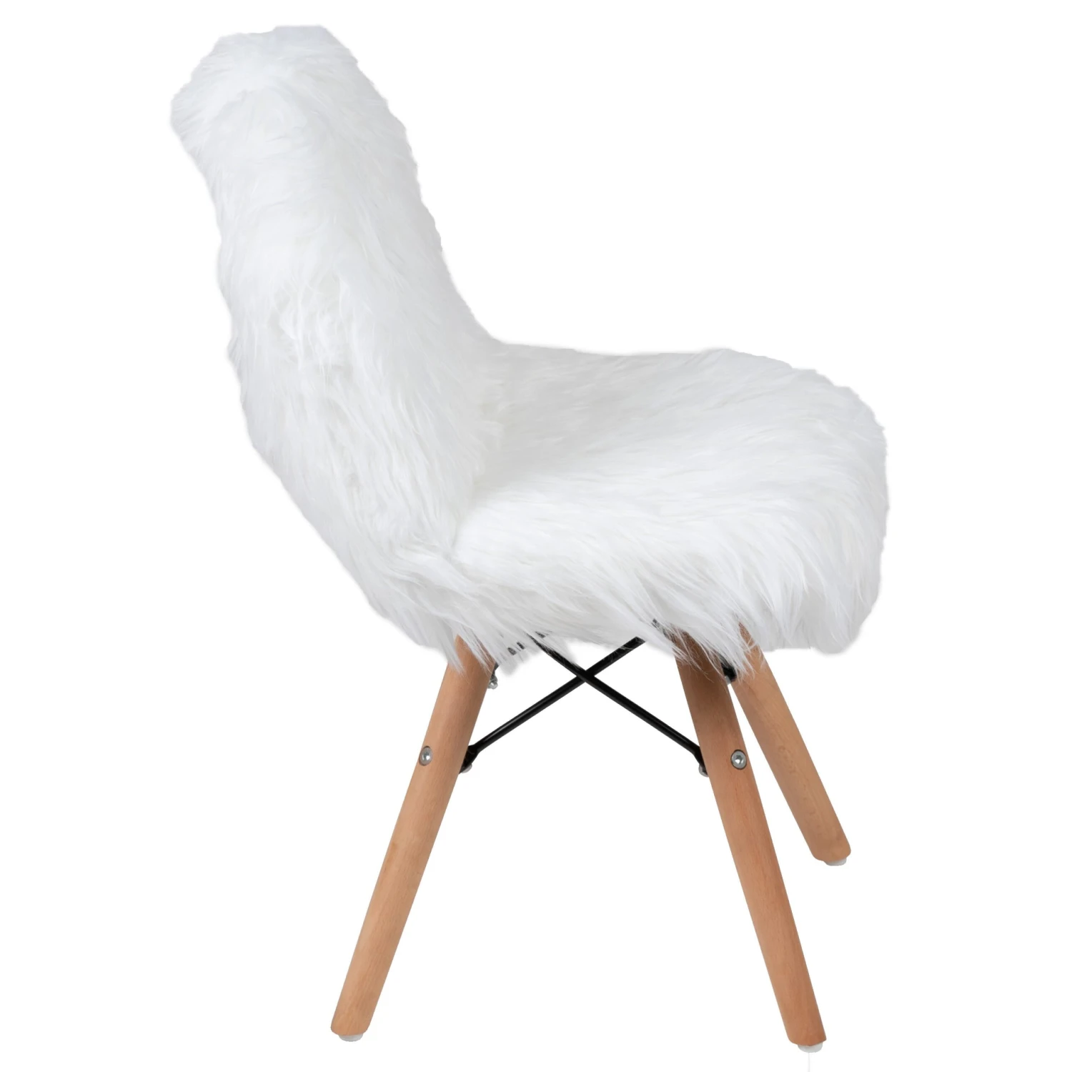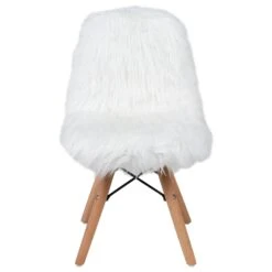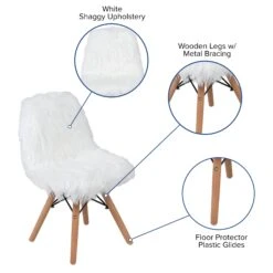 Create a kids zone for kids to hang out with this adorable shaggy dog accent chair. The kids fuzzy chair is a cool way to incorporate fun seating in the playroom, or family room. The ergonomically curved form is shaped for comfort. Wooden legs feature metal bracing that adds style as well as support.