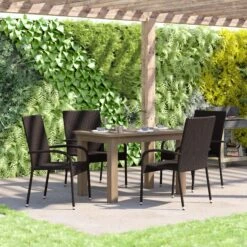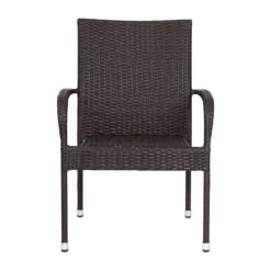 Constructed from premium fade and weather-resistant materials, these patio chairs are made to withstand the elements and are just as stylish at the dining room table as they are on the deck. Powder coated steel frames, wrapped in polyethylene wicker, hold up to 350 lbs. static weight and easily wipe clean with a damp cloth for a much shorter chore list.