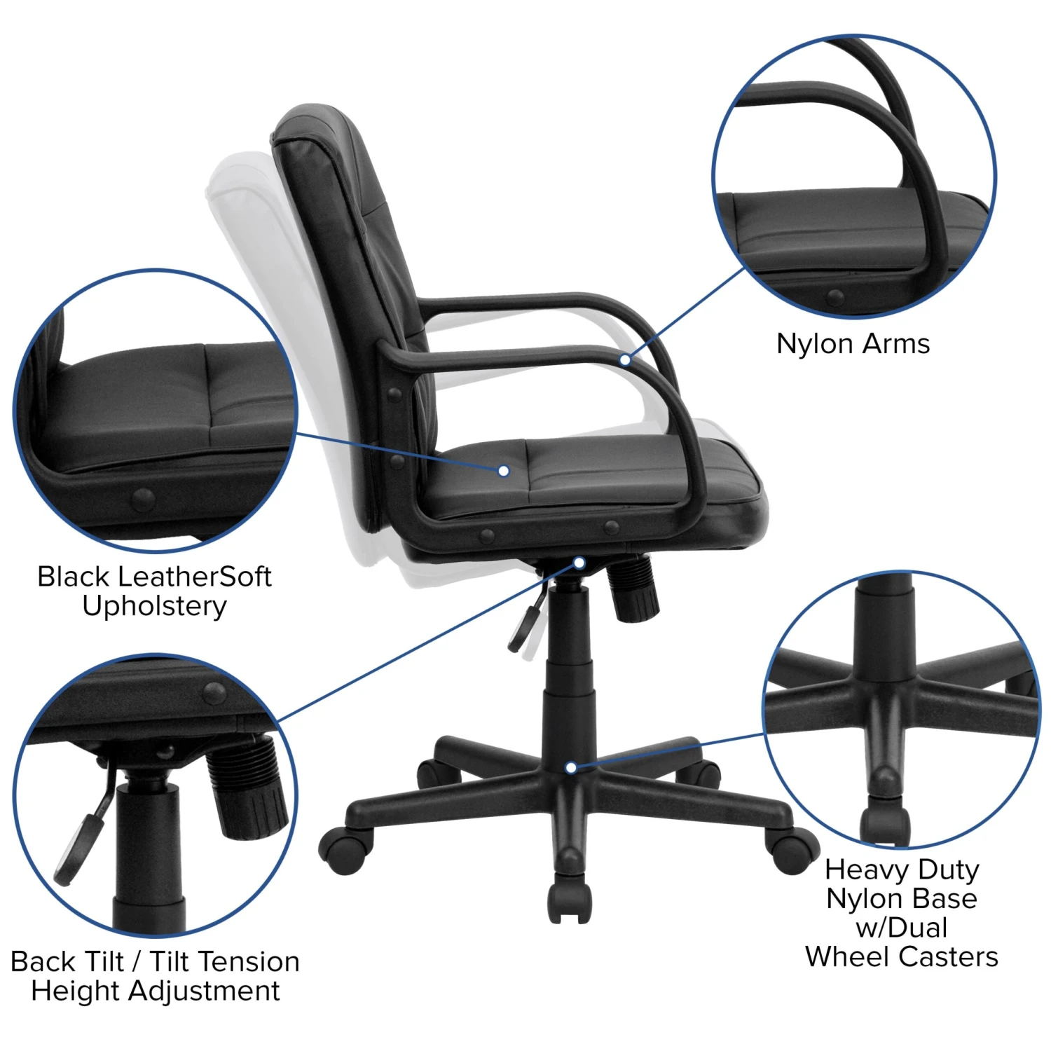 Flash Mid-Back LeatherSoft Swivel Task Office Chair With Arms