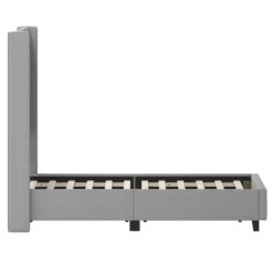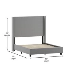 Flash Quinn Upholstered Platform Bed With Channel Stitched Wingback Headboard, Mattress Foundation With Slatted Supports, No Box Spring Needed