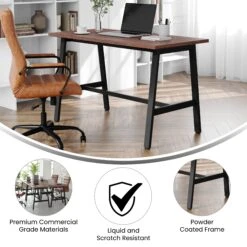 Foster big thinking during brainstorming sessions or encourage open communication and interaction between stakeholders during important meetings with this commercial grade conference table. Available in timeless finishes that will blend well in any environment, this boardroom table will make a statement while providing ample space for multiple guests. The liquid and scratch-resistant 1 inch thick table top with a durable laminate finish on both sides and PVC edging increases durability for long-lasting use. The heavy-duty, powder coated, A-frame steel base comes with included hardware and easily attaches to the underside of the table into the predrilled holes. This conference room table holds up to 300 lbs. static weight, and features adjustable floor glides ensuring a level surface. Assembly takes less than 10 minutes and cleanup is easily achieved with a damp cloth.