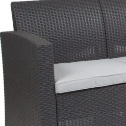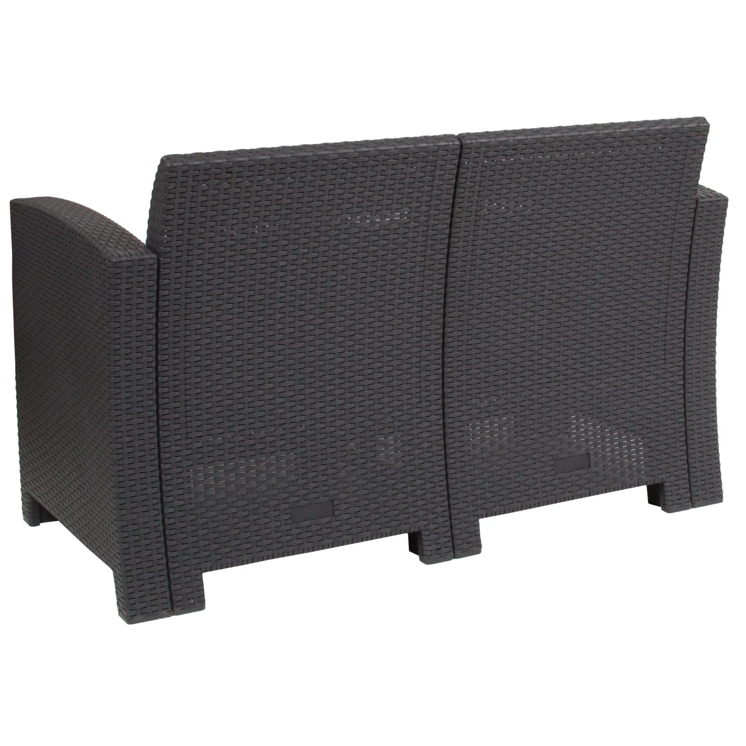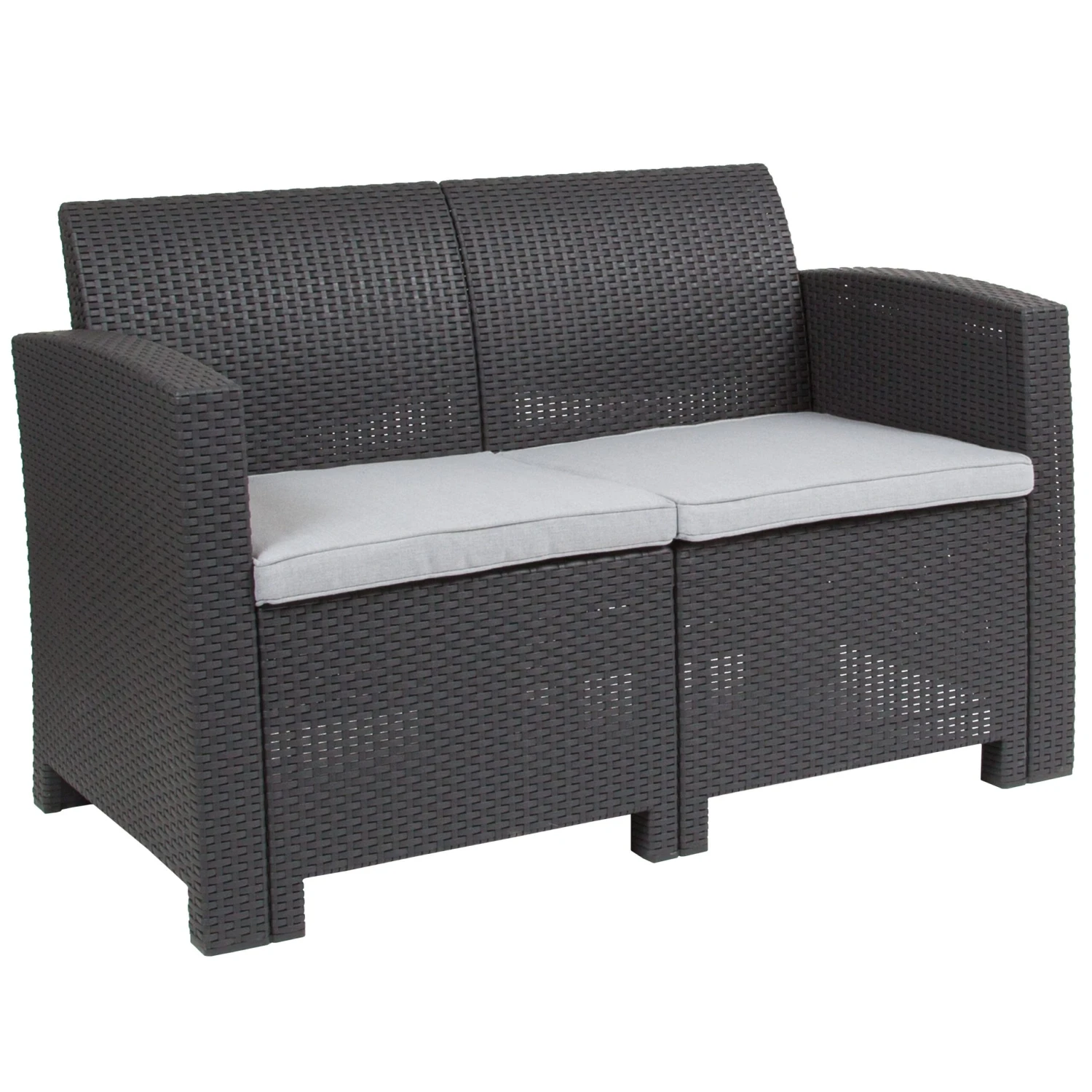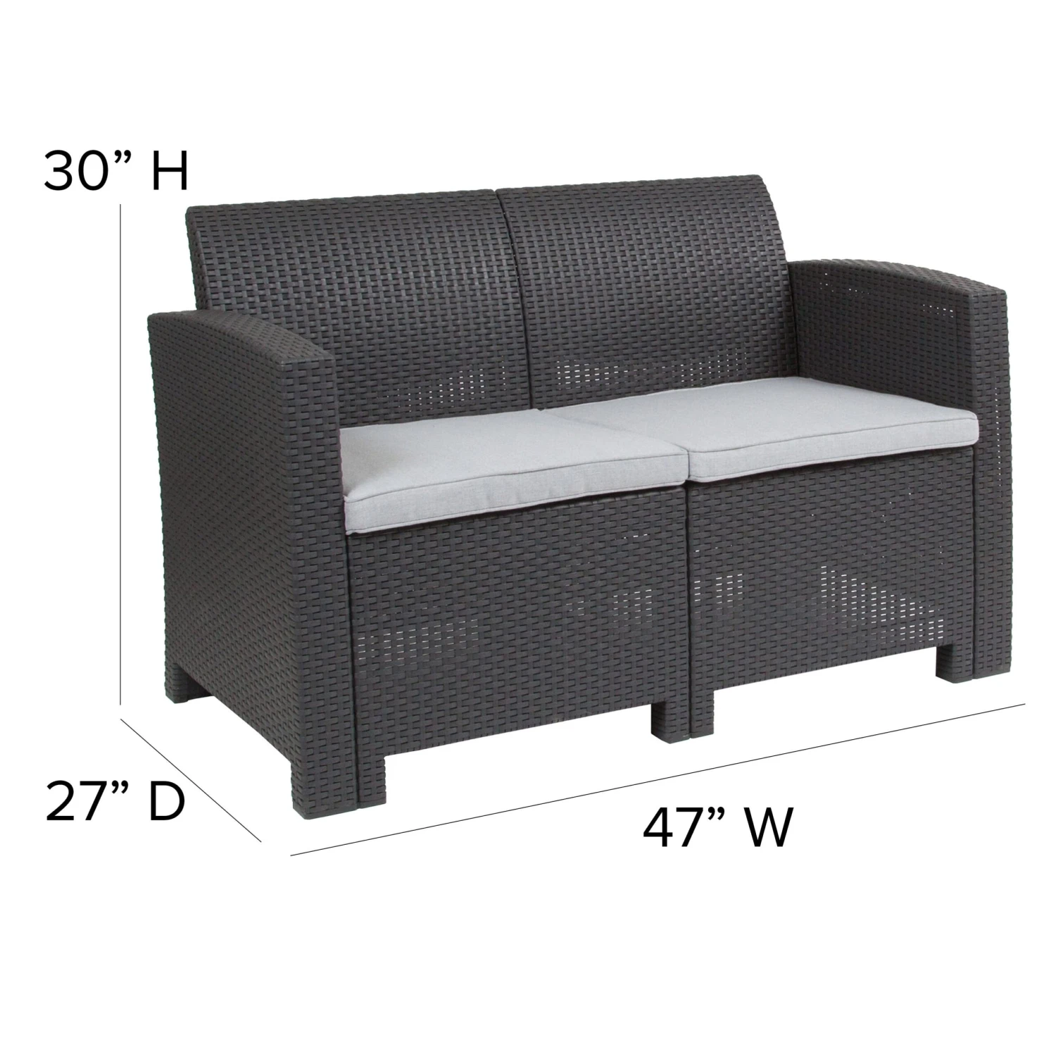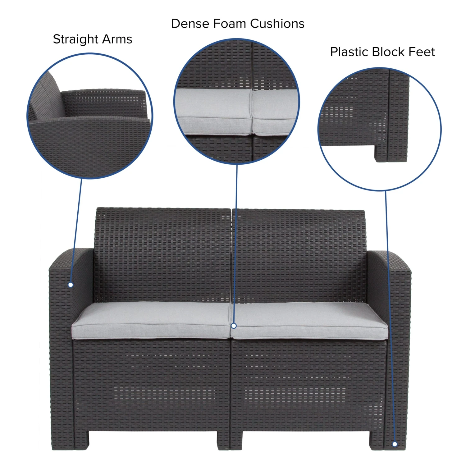 Flash Seneca Faux Rattan Loveseat With All-Weather Cushions