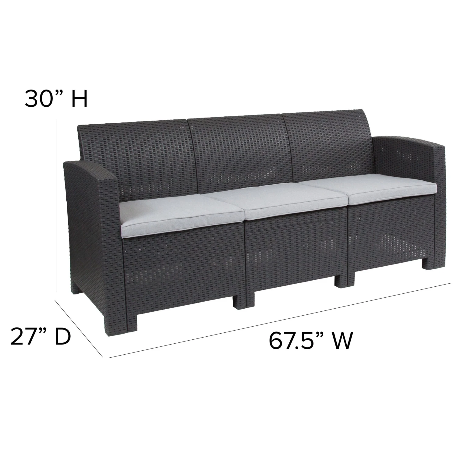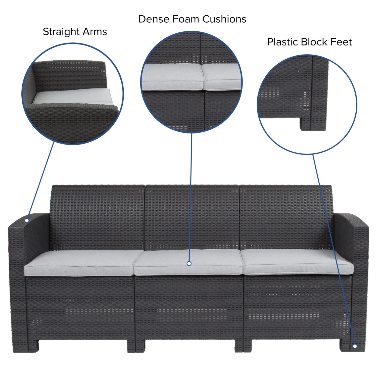Flash Seneca Faux Rattan Sofa With All-Weather Cushions