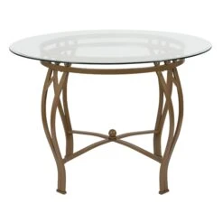 Be the first to review “Flash Syracuse 42” Round Glass Dining Table With Bowed Out Metal Frame” Cancel reply