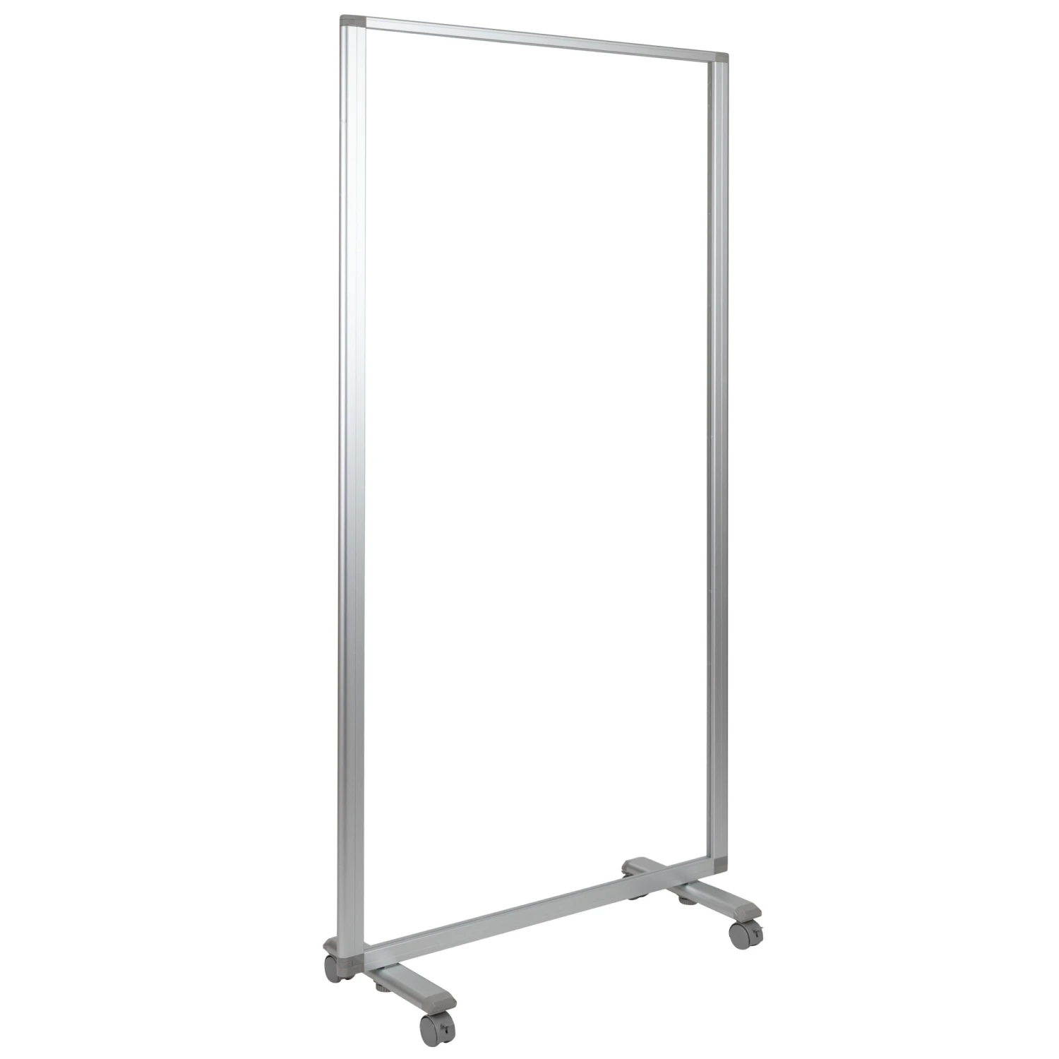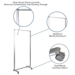 Improve safety and shield your staff and guests against airborne contaminants and viruses with a room divider. The clear room divider allows team members to see each other clearly to continue routine interactions. Create a safe space in college classrooms by using this clear acrylic mobile room divider in between students seated at the training table.