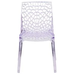 Create a beautiful and artistic statement with this transparent accent chair. You will fall in love with this chair with its intricate cut-out design. The transparency of the chair allows it to take up less space visually as with a solid chair. This chair was crafted with an ingenious combination of lightness and strength. Due to its stacking capabilities, elegant design and use in indoor and outdoor locale this chair can be used in diverse environments.