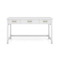 The Martha Stewart Hutton Home Office Desk adds timeless elegance and functional storage to any workspace. The trend-forward finish and complementary hardware elevate your decor with thoughtful touches that get noticed. Ample storage is provided in a wide, top-center pull-out drawer and two side pull-out drawers for keeping your work surfaces tidy. Pair with the Hutton bookcase and file cabinet for a total home office refresh. Drawer glides are pre-assembled to save time during assembly, which is made easy with the included tools and step-by-step instructions.