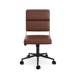 Bring a modern aesthetic to your home’s corporate nook with the Martha Stewart Lulu Office Chair. The sleek, armless design adds a chic touch to any home workspace and fits perfectly with most desks, streamlining your layout and keeping your space tidy and neat. A gorgeous upholstery adorns the back and seat, complemented by metallic side accents and frame with a stylish finish to deliver an understated charm. Take on every workday in comfort with the seat’s tilt functionality and pneumatic, multi-position, height-adjust lift that help you find just the right position. Plus, the 360° swivel seat and dual wheel casters allow you to move around your home command center hassle-free. Assembly is easy with the included tools and step-by-step instructions and keeping your chair looking pristine is easy by wiping clean with a dry cloth.