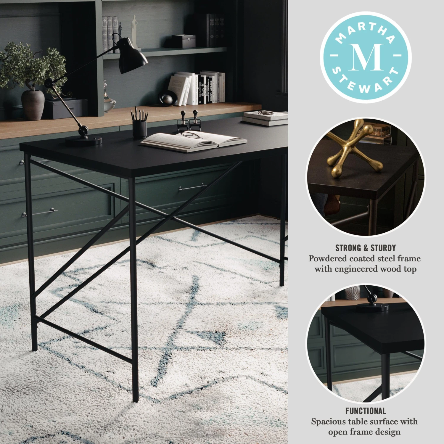 Add modern style and functionality to your at-home workspace with the Martha Stewart Maddox Home Office Desk. Clean lines and a minimalist design make this desk perfectly suited to any aesthetic. The durable engineered wood work surface features a classic wood grain finish atop a powder coated metal frame for beautiful contrast. Adjustable glides keep your desktop level while also protecting floor surfaces. Assembly is easy with the included tools and step-by-step instructions.