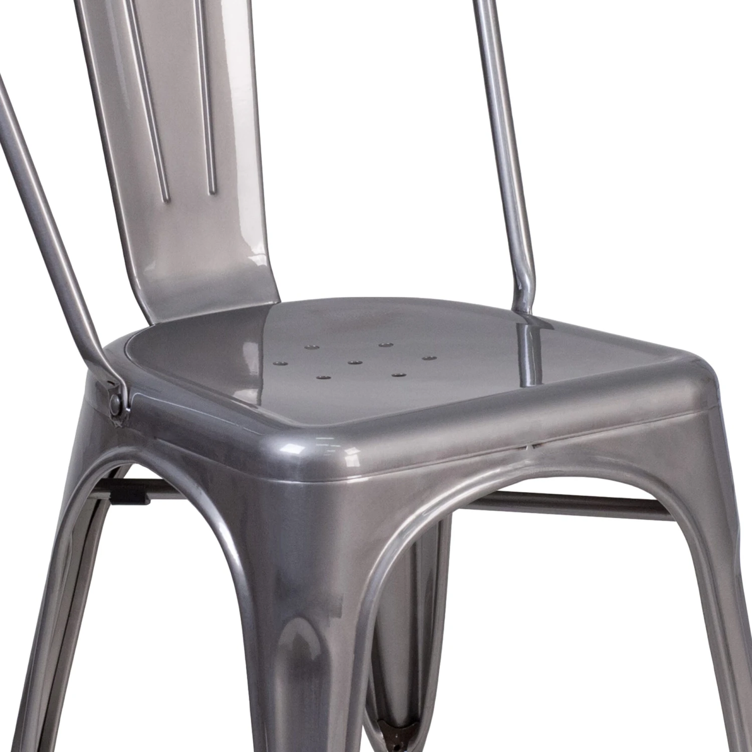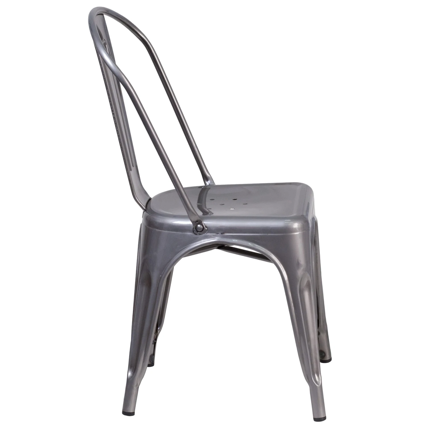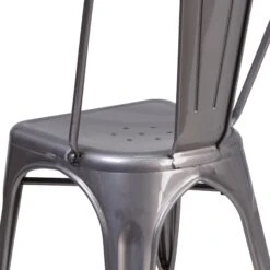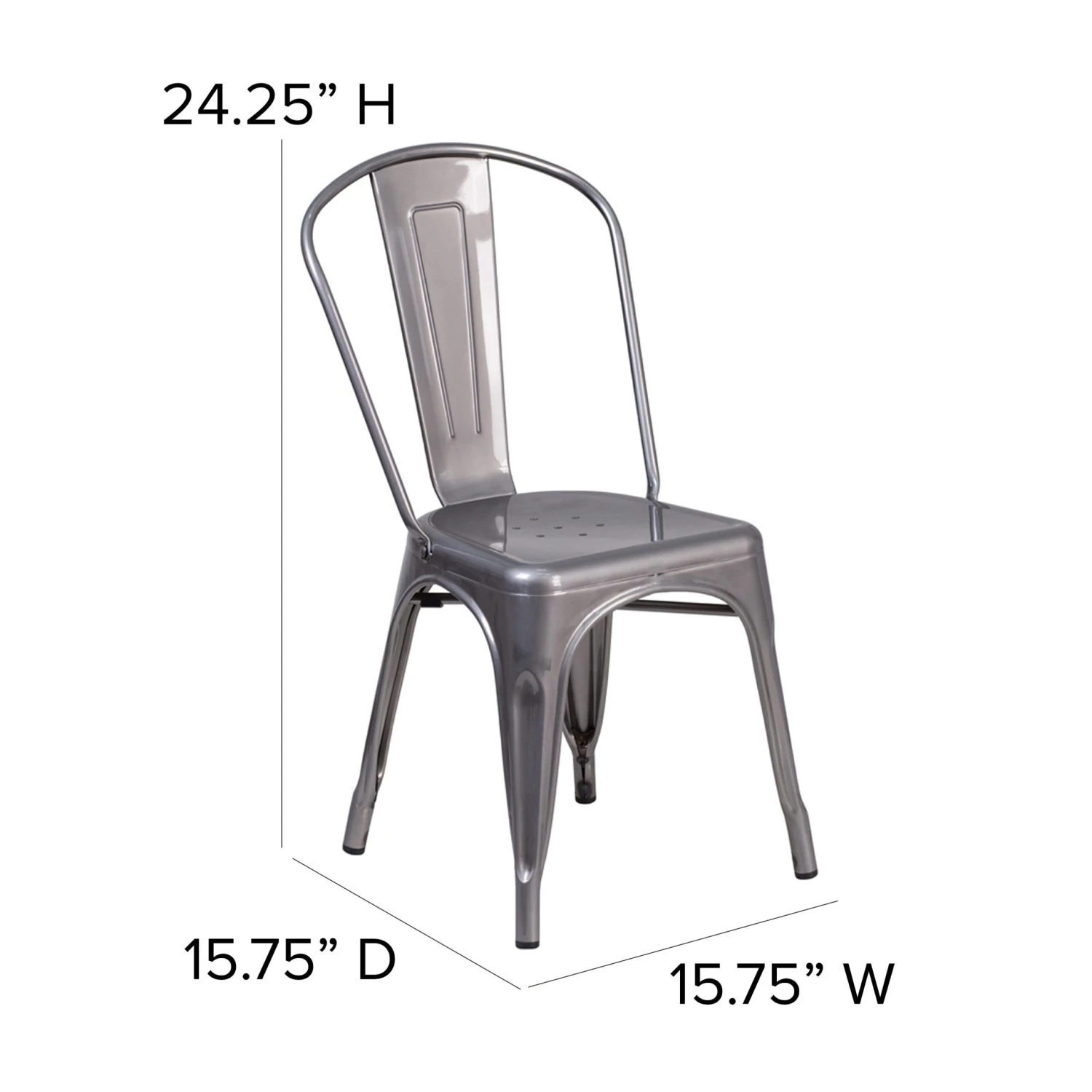 Instantly add an urban look and feel to your dining area with this coated stackable metal chair with vertical slat back and drain hole seat. This chair’s curved, vertical slat back provides firm spinal support and ensures guests are at a comfortable height to enjoy your signature drinks, appetizers, entrees and desserts. Additionally, its flat, drain hole seat is easy to clean which is a must in the hospitality industry. Made of sturdy metal, this chair is durable enough to withstand years of use. An under-seat cross brace provides additional stability while the lightweight design allows for easy movement and transportation. This metal dining chair can be stacked up to 15 high when you need to clean the floors or for storage when not in use. Caps on the cross brace protect the finish when stacked. Add this bistro style chair anywhere you want a sleek, modern look.