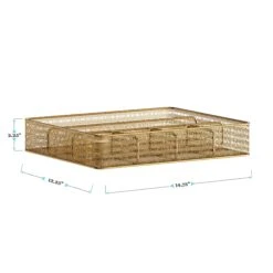 When your work at home tasks demand a great deal of your time, the Martha Stewart 6 Compartment Large Desk Drawer Organizer for Accessories and Office Supplies will ensure your work space is organized and inspiring. Satisfying environmental cues can direct your energy toward productivity, creativity, and staying on task by keeping essential items organized, tidy, and within reach. This metal mesh drawer tray keeps paper clips, scissors, and sticky notes in a dedicated place for quick, easy access. Pair this organizer tray with other essentials in the collection for a chic and cohesive look in your remote office.