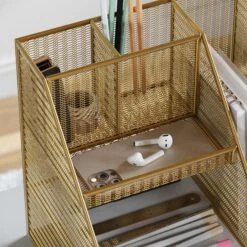 When your work at home tasks demand a great deal of your time, the Martha Stewart Metal Mesh Large Desktop Organizer will ensure your work space is organized and inspiring. Satisfying environmental cues can direct your energy toward productivity, creativity, and staying on task by keeping essential items within reach. This metal mesh organizer serves both purposes by providing you with an aesthetically pleasing and efficient workspace that keeps your important files, papers, and office supplies in one organized place. Pair this storage solution with other essentials in the collection for a cohesive look in your remote office.